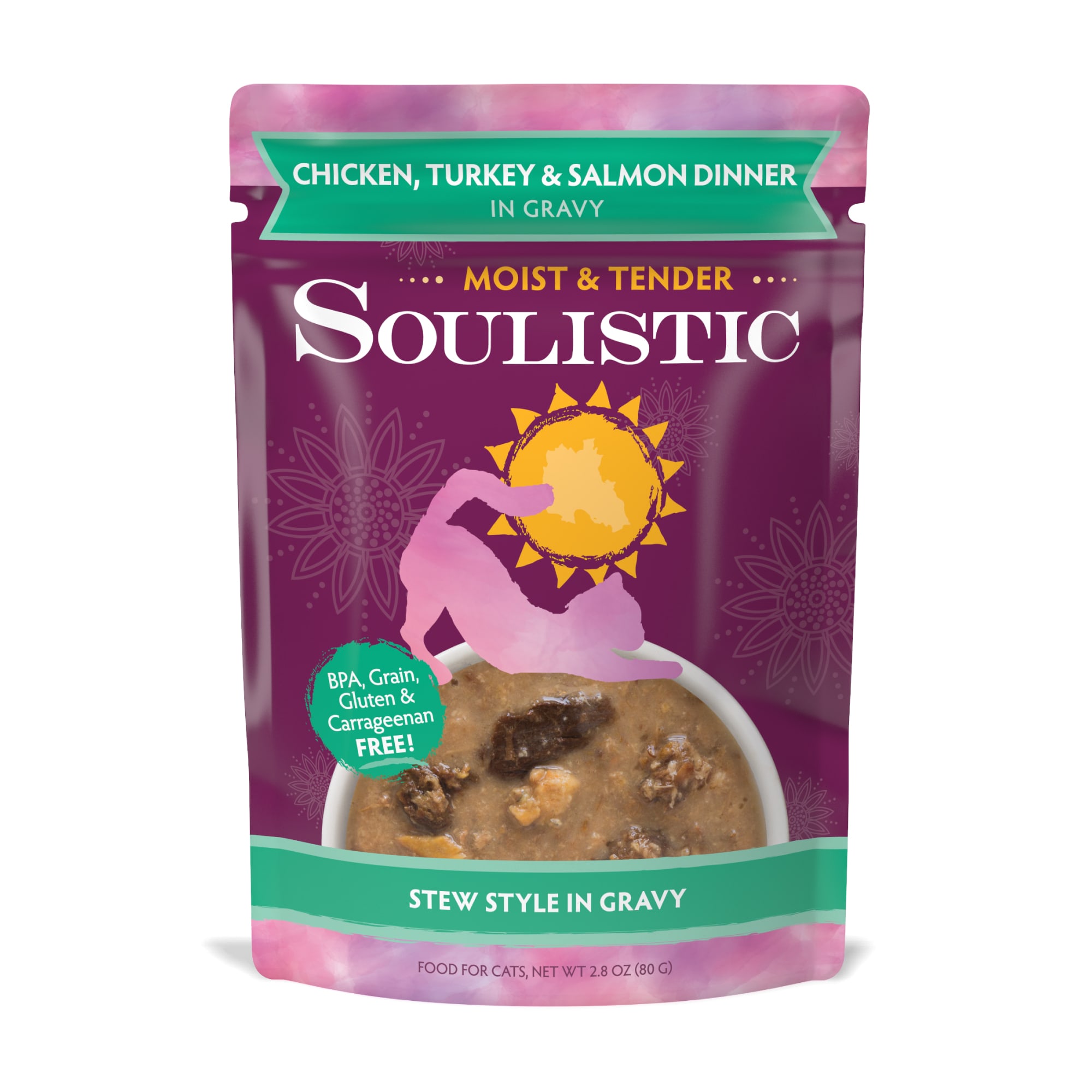 Soulistic Moist Tender Chicken Turkey And Salmon Dinner In Gravy Wet Cat Food 2 8 Oz Case Of 8 Petco
